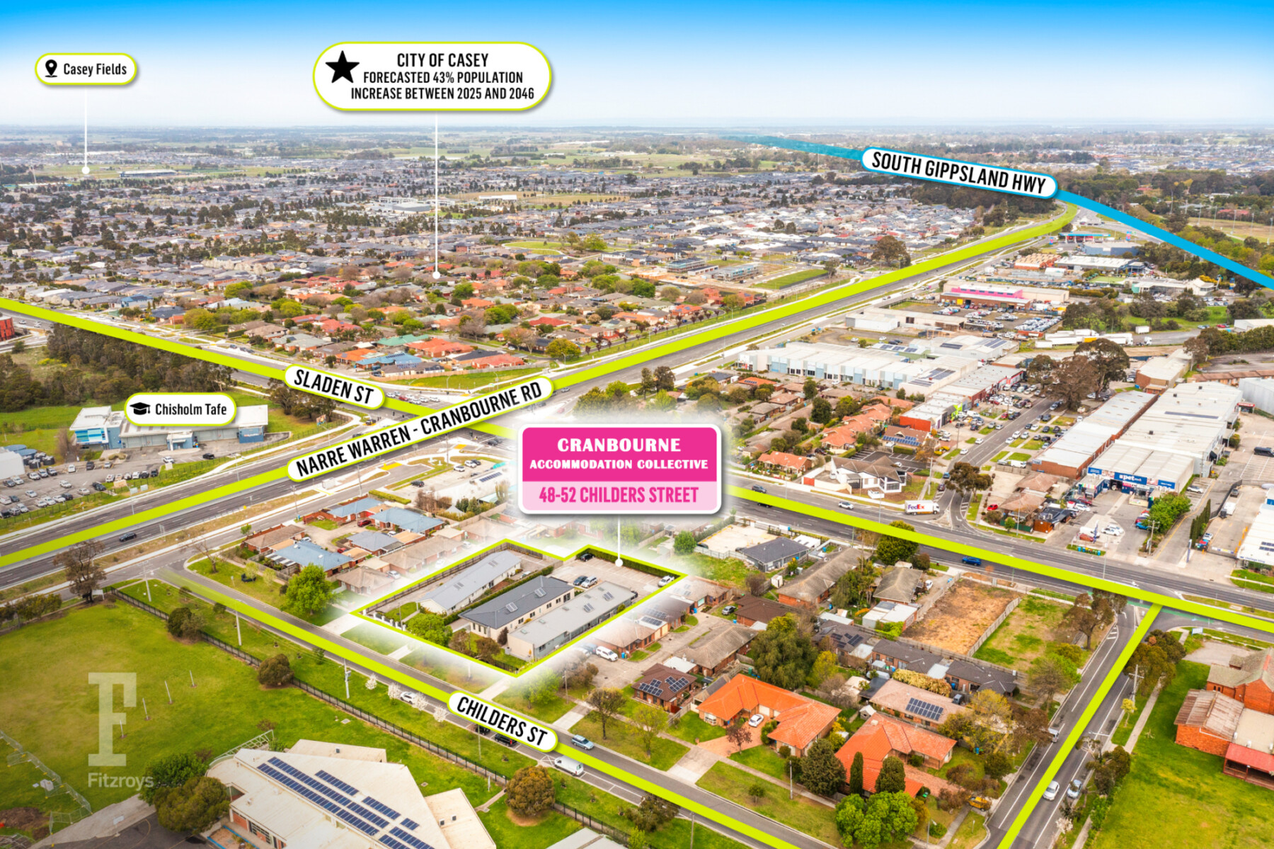 Fitzroys is delighted to present a truly unique and versatile accommodation facility at 48, 50 & 52 Childers Street, Cranbourne for sale via Expressions of Interest closing Thursday 20th November at 3pm.