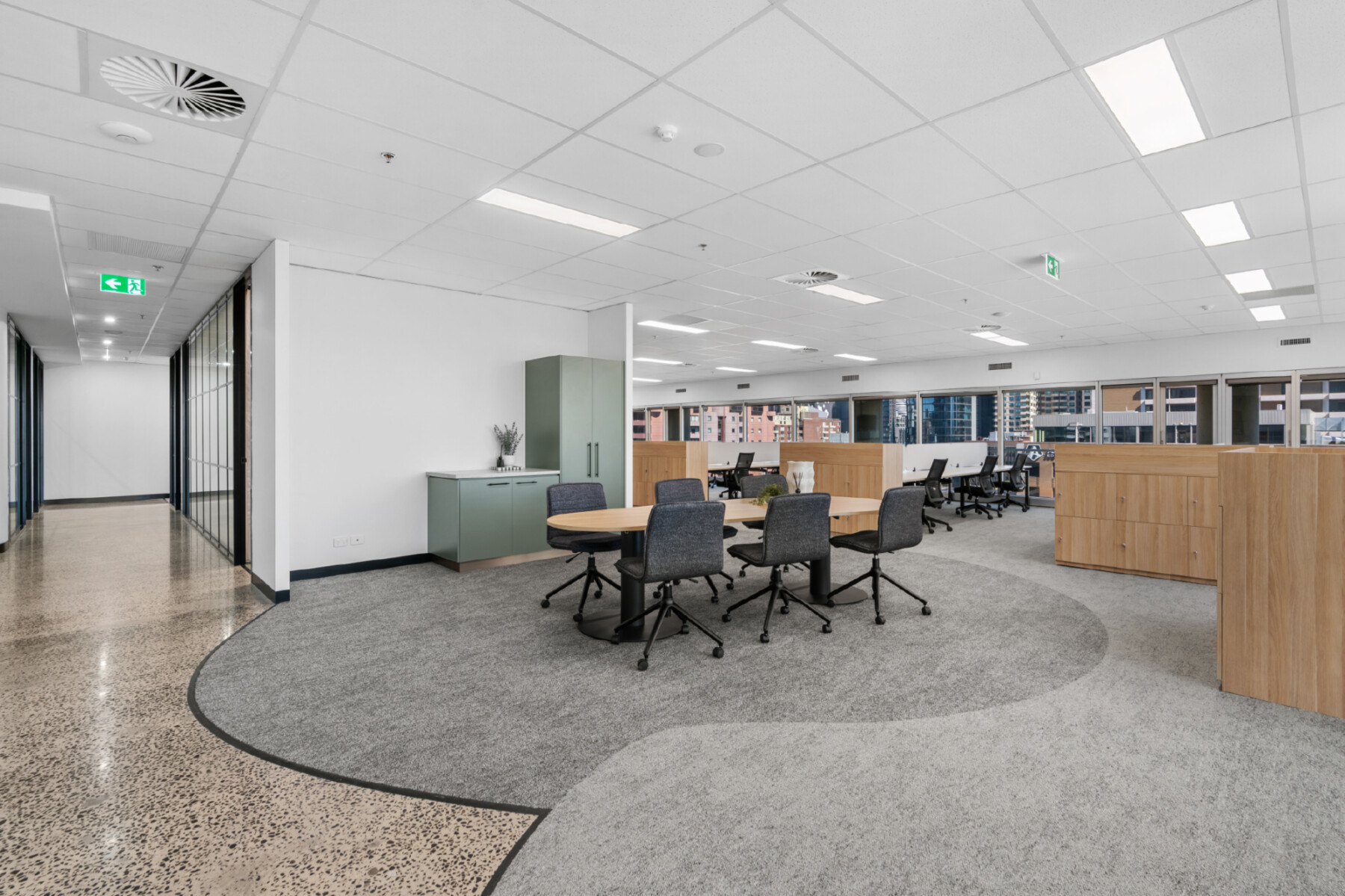 Level 3 | 178.3sqm | Brand new spec fit out with 18x workstations, 1x 8pax Boardroom, 1x 4pax Meeting Room and 2x Quiet Rooms.