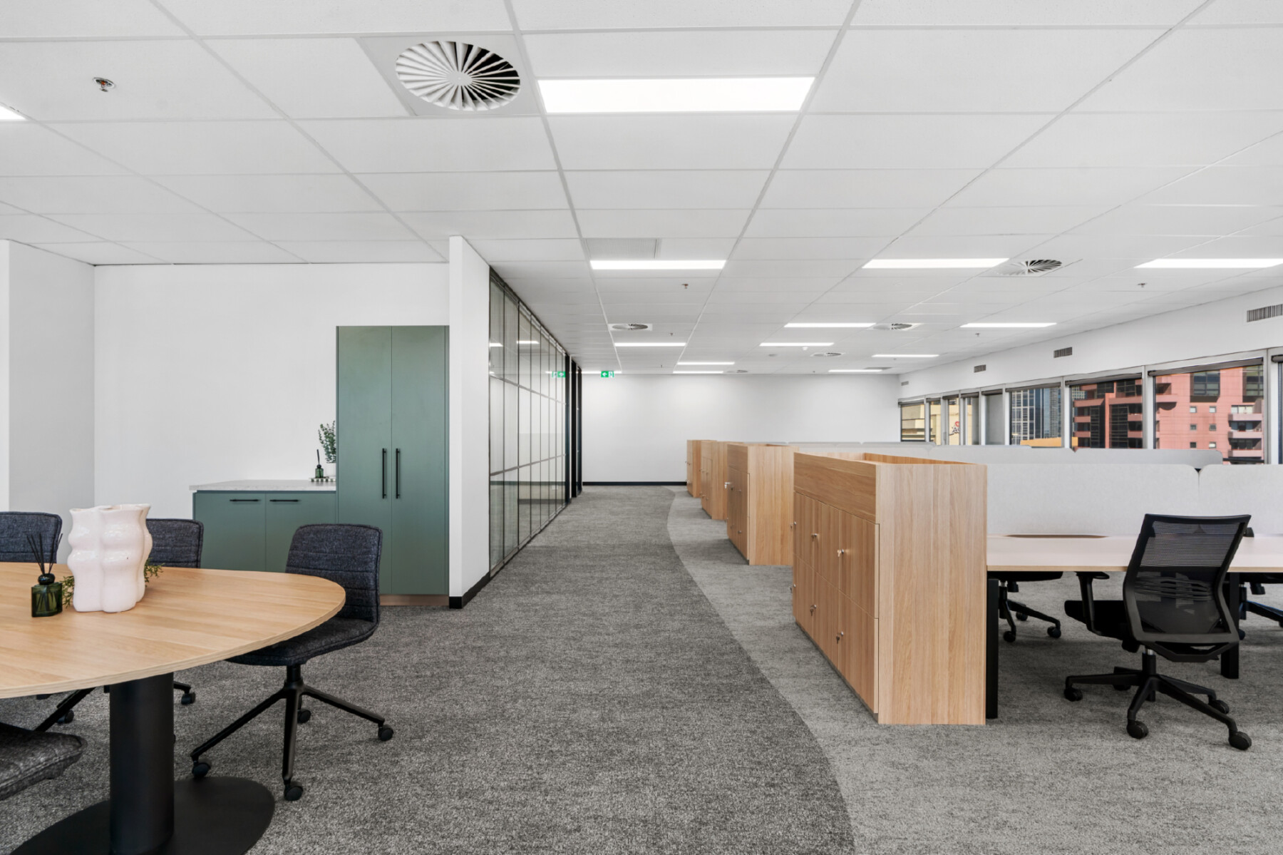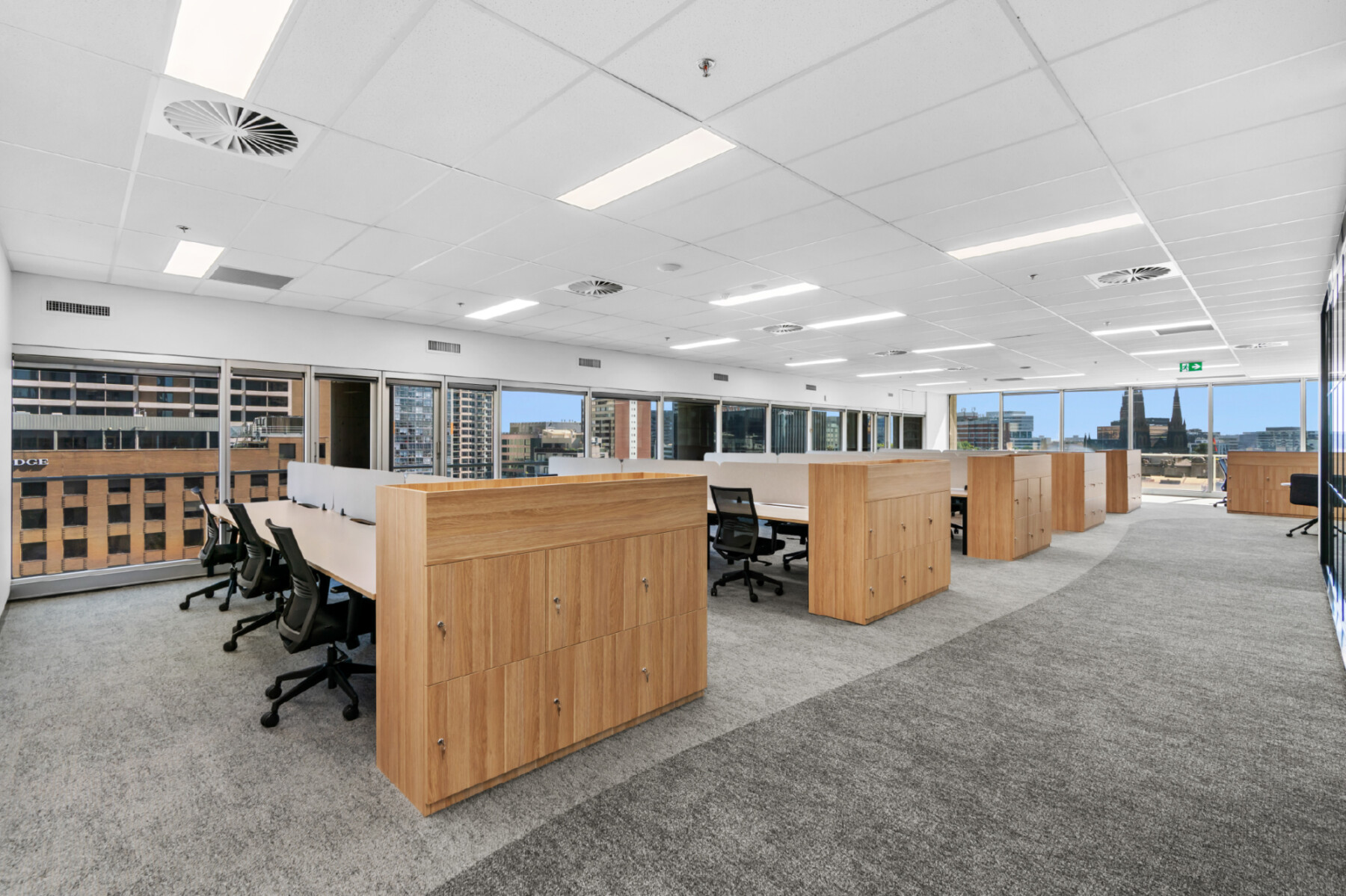 Level 9 | 344sqm | Brand new spec fit out with 34x workstations, 1x 12pax Boardroom, 1x 6pax Meeting Room, 1x 3pax Meeting Room, 1x Office, 2x Quiet Rooms, 1x Hot Desk/ Collaboration space and Kitchen/Breakout area.