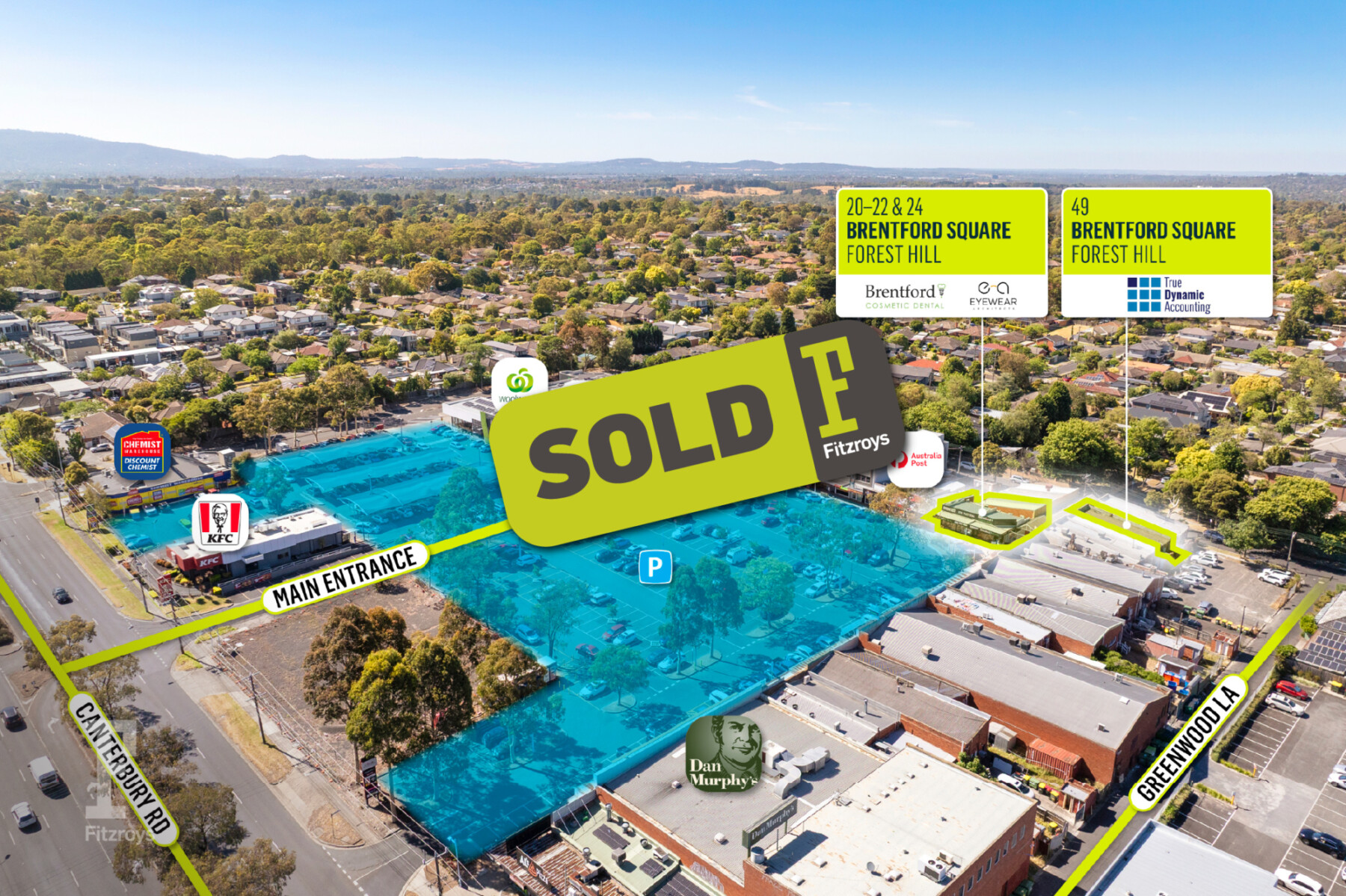 Brentford Square, Forest Hill is a popular shopping precinct with 100% retail occupancy (as of February 2026) and is anchored by major traders including Woolworths, BWS, Chemist Warehouse, Dan Murphys and KFC. The centre is supported by over 330 onsite car parks, providing convenience for customers and staff.