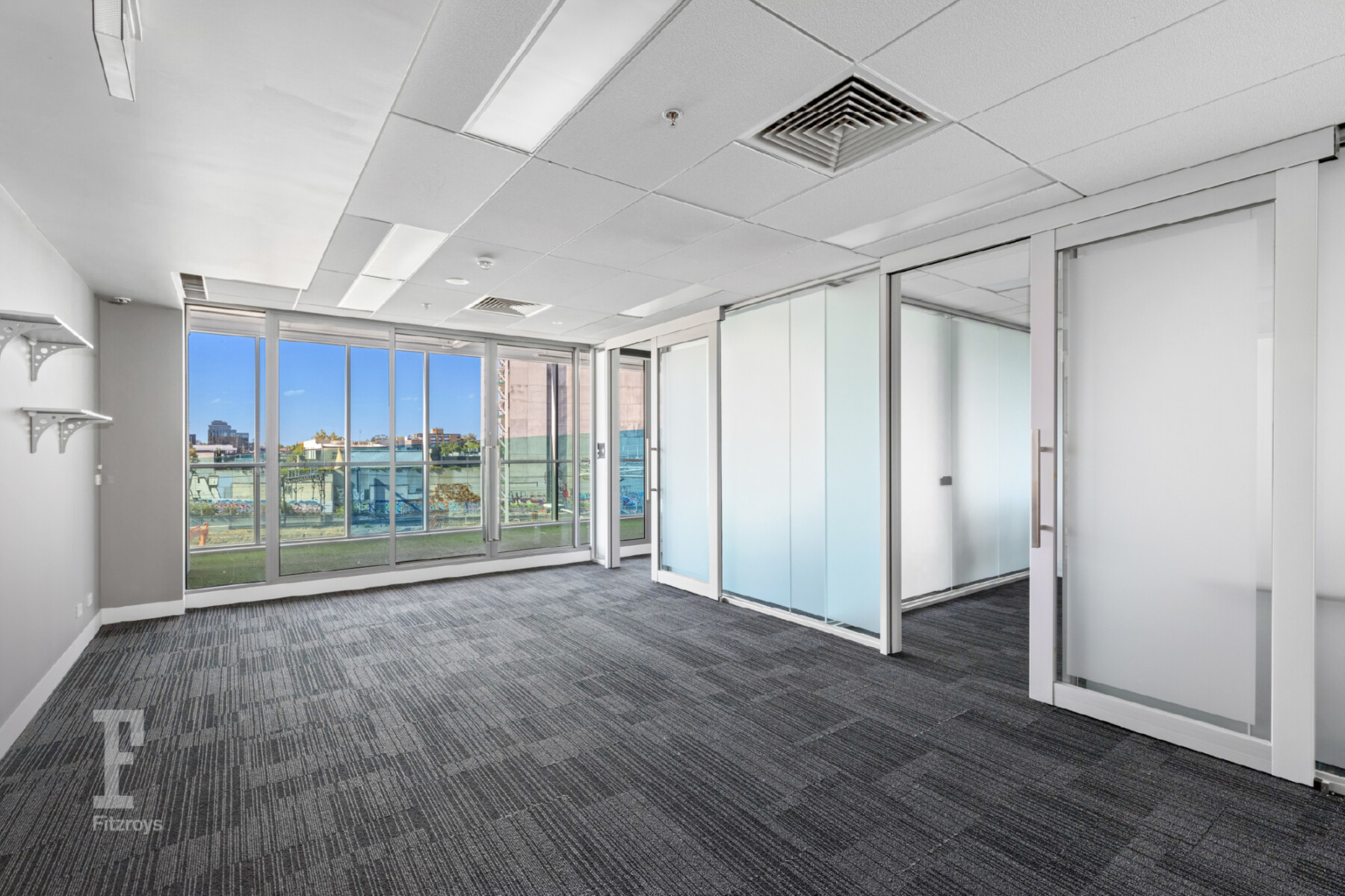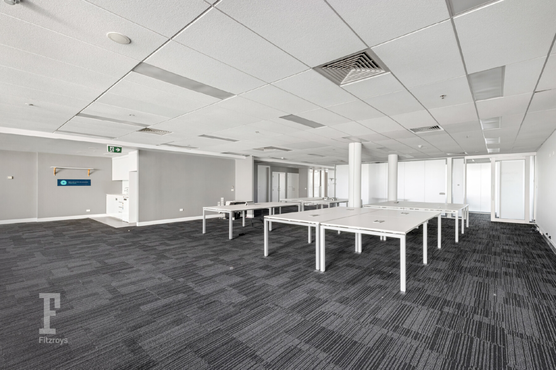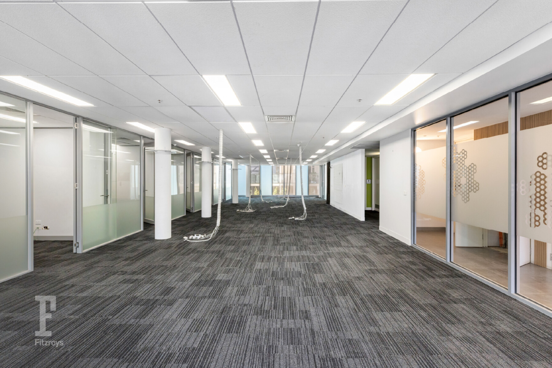 Level 2 (313sqm) – Existing fit-out includes a boardroom, multiple meeting rooms/offices and an open-plan area for workstations.